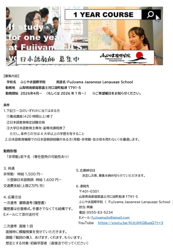 Fujiyama JLS. is a very unique Japanese language school that can fully support such good encounters and procedures.